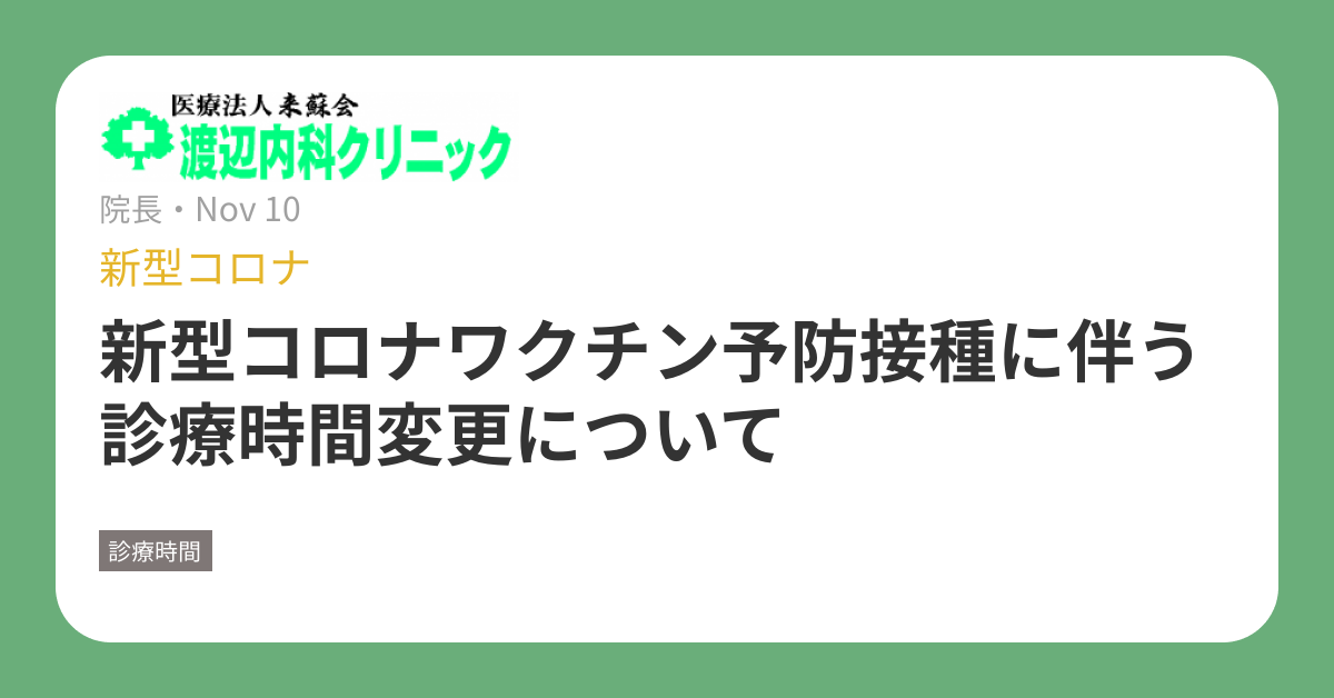 新型コロナワクチン予防接種に伴う診療時間変更について
